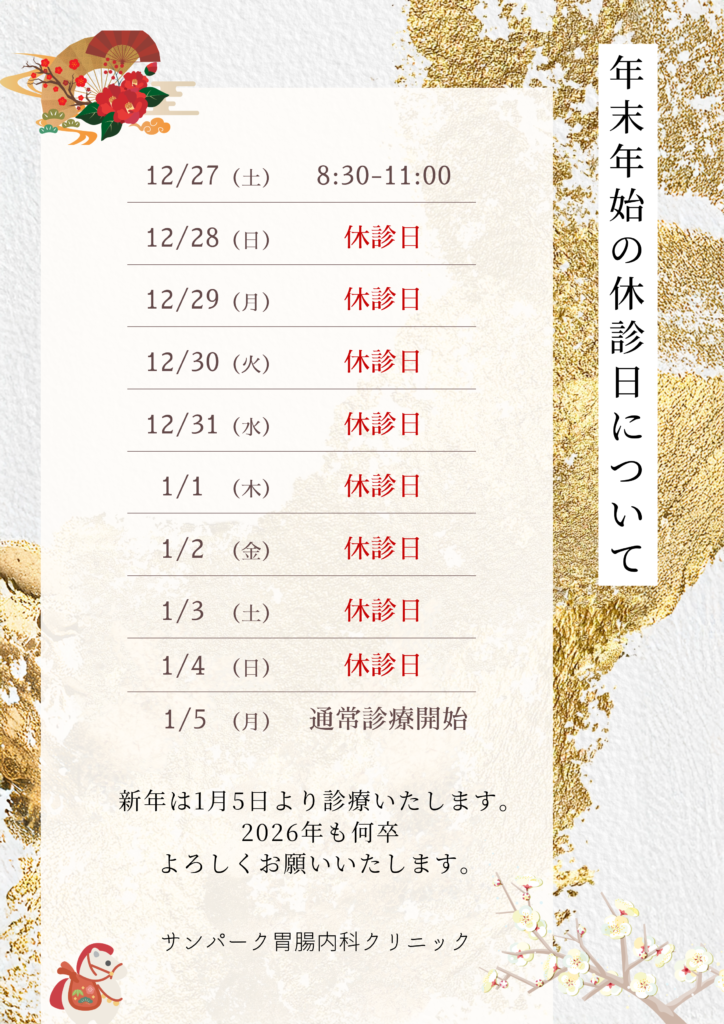 年末 令和7年12月27日(土) 11:00まで(最終受付10:30)